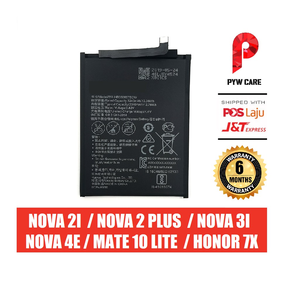 Hw Nova 3i Battery Nova 2i Battery Nova 4e Battery Mate 10 Lite Battery Honor 7x Battery Hb356687ecw Battery Shopee Malaysia
