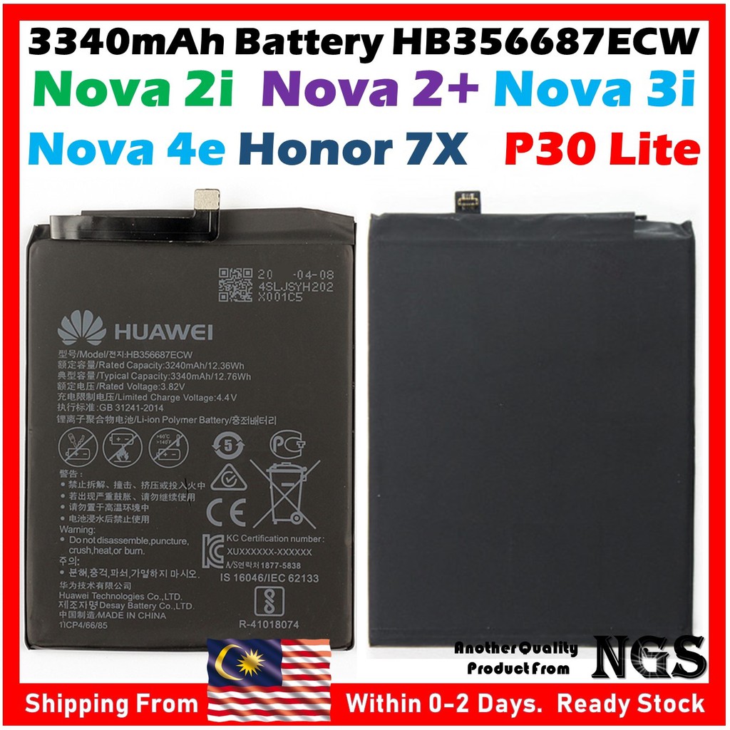 Shop Malaysia Original 3340mah Battery Hb356687ecw For Huawei Nova 2 Huawei Nova 2i Huawei Nova 3i Huawei Nova 4e P30 Lite Honor 7x Shopee Singapore